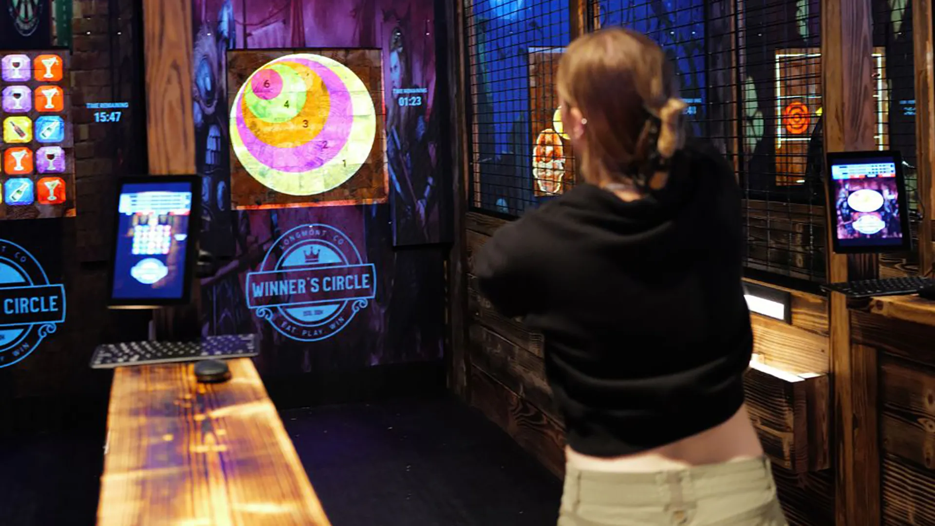 Axcitement delivers projected gameplay software with auto-detection and digital scoring, used across axe throwing venues, FECs, bars, and mobile attractions.