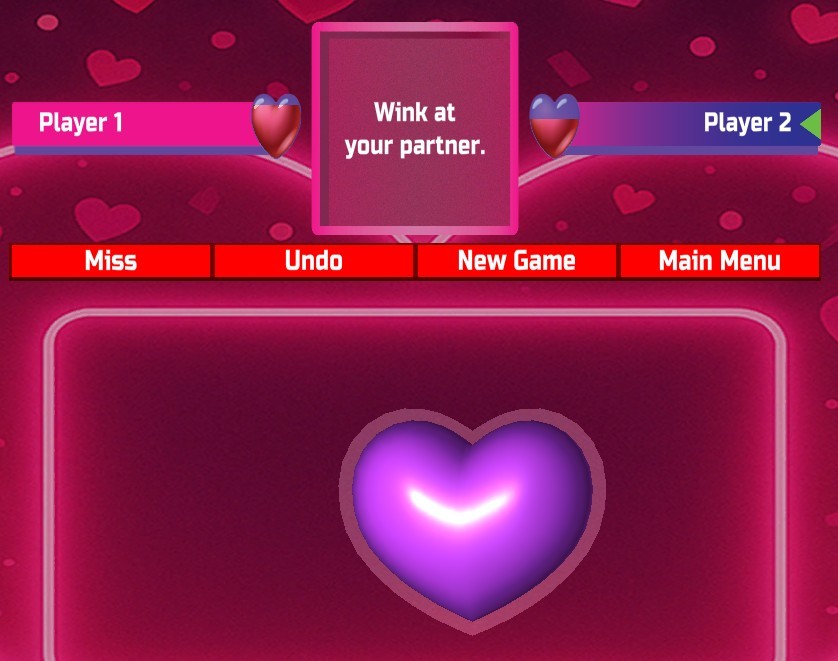 A large target heart with a fun explosion makes for simple rules and exciting visuals. Once hit the player is given a suggested action to perform.